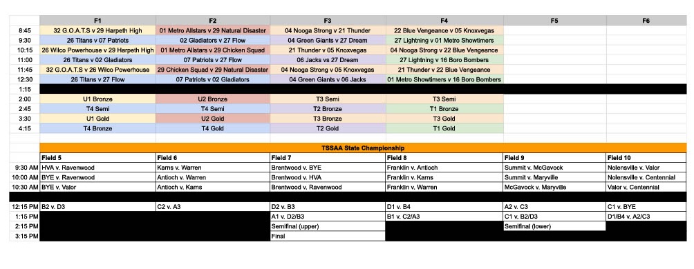 TSSAA Flag Football - Pool Play Start, SOTN Fields 5-10